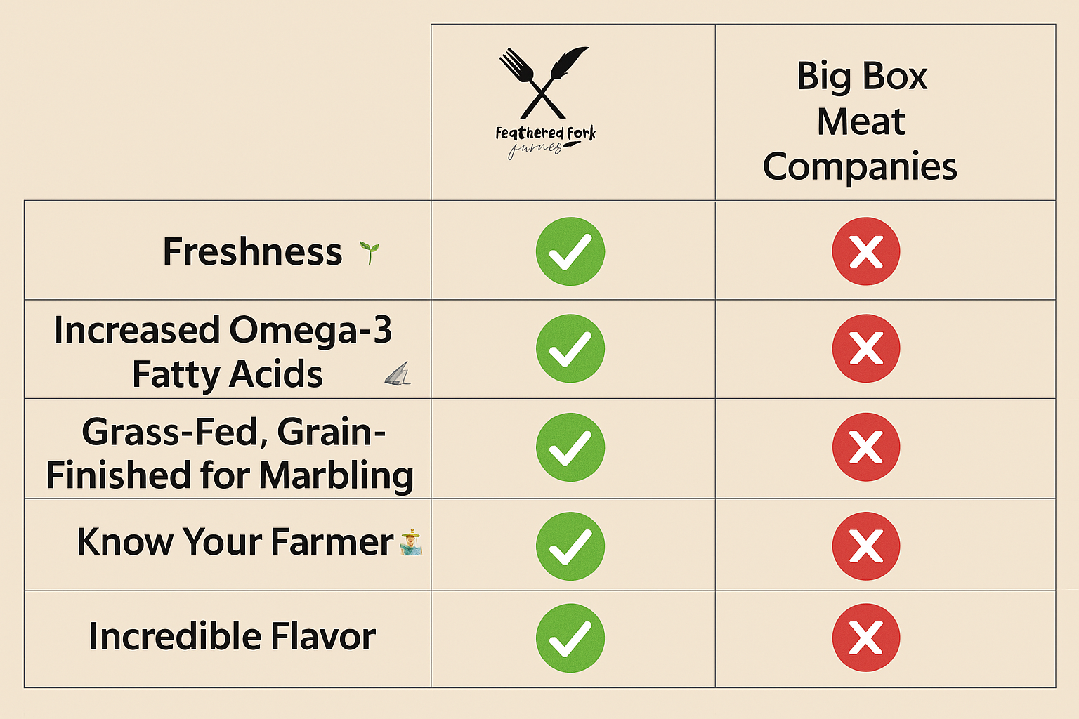 "We are always impressed by the flavor and quality of the beef we order from Feathered Fork Farms!"